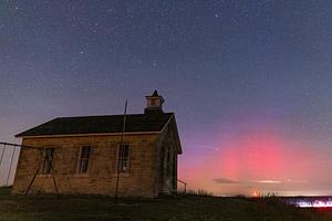 On November 30 the CME that was related to M9.9 arrived at earth giving North America a show before sunrise. I missed that so when I saw a G3 watch was out for last night 12/01/2023 I took my shot and drove all the way to Kansas into clear skies as most of the US was still under clouds from a weather system. I got to my spot a place I've been dreaming of shooting the aurora with some time now and as I set my camera up there was a couple of clouds still hanging on. As those moved out bright red pillars showed up moments later and even had a bright purple hue on the top of the red pillars. This is a very old school house in the Flint Hill of Kansas.