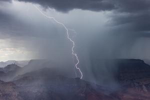 Lightning and rain in the Grand Canyon.
